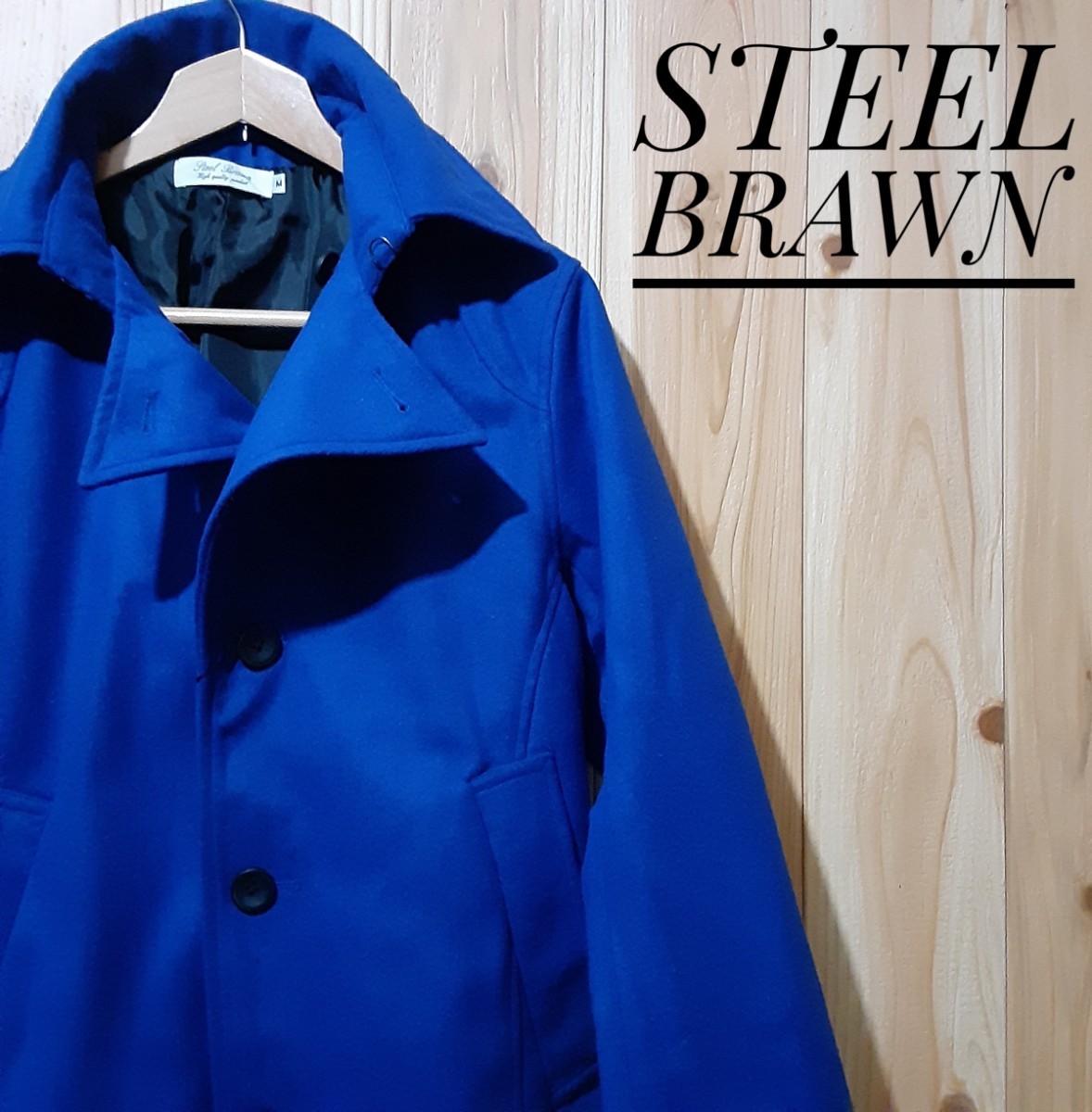 > 最値!新品!セレクトショップ取り扱い!名作!スティール ブラウン高級ウール Pコート ジャケット!完売!ロイヤルブルー!青 Mサイズ 残りわずか