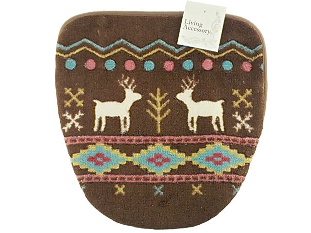 - トイレ蓋カバー 温水洗浄・暖房便座用 ノルディック柄 ブラウン
