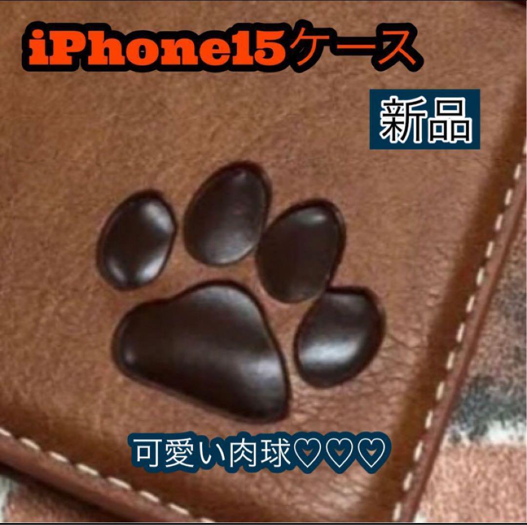 > iPhone15ケース 手帳型 可愛い 肉球焼印 新品未使用 ブラウン