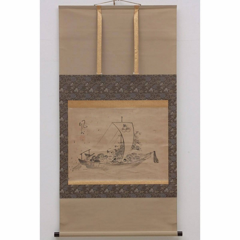 - EF08-9251[TOM]【真作】風外慧薫 掛軸 紙本 肉筆 水墨「賽船」落款 印有 合箱 書画 画僧 江戸初期 曹洞宗 小田原成願寺