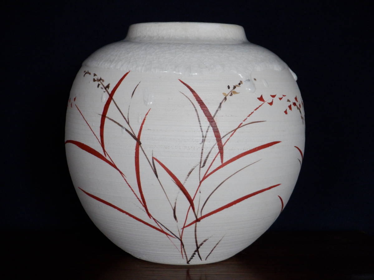 - 藤平 正文作 「正文」在銘 花瓶 秋草図 優作 清水焼 京焼 未使用品