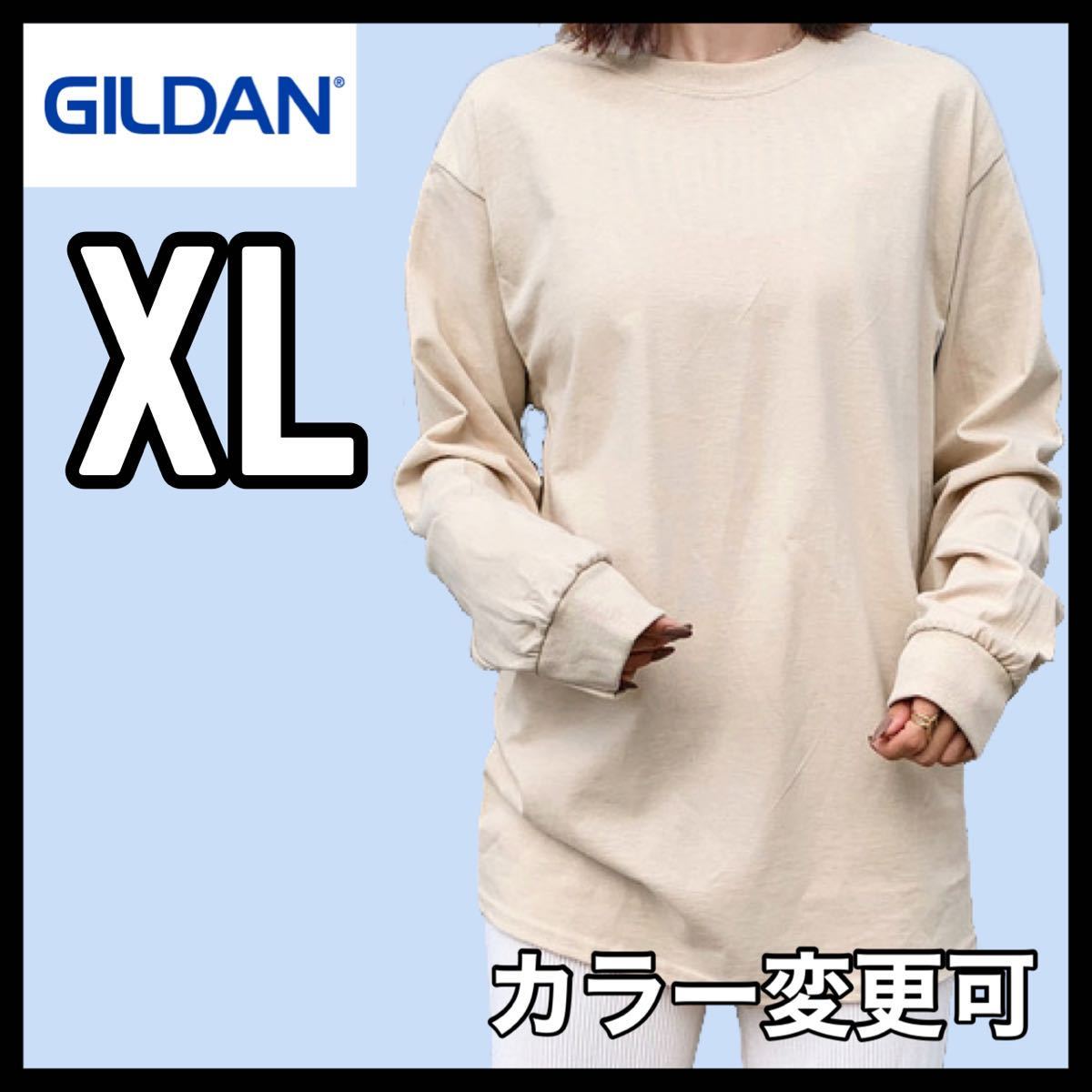 - 新品未使用 ギルダン 6oz ウルトラコットン 無地 長袖Tシャツ ロンT ベージュ XLサイズ ユニセックス GILDAN