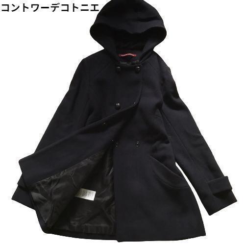 - 【コントワーデコトニエ】フード付 レディース チェスターコート ダークネイビー
