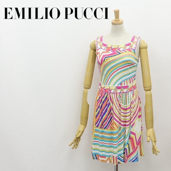 - 国内正規品◆EMILIO PUCCI エミリオ プッチ スター 星 プッチ柄 ギャザー フレア ノースリーブ ワンピース 38