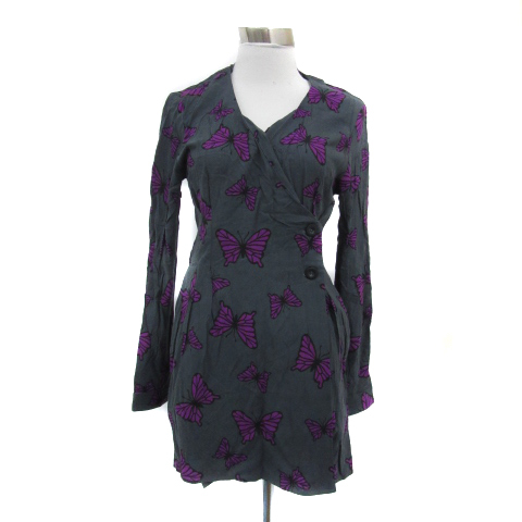 - エックスガール x-girl ワンピース ミニ丈 長袖 カシュクール 総柄 1 グレー 紫 パープル /YS8 レディース