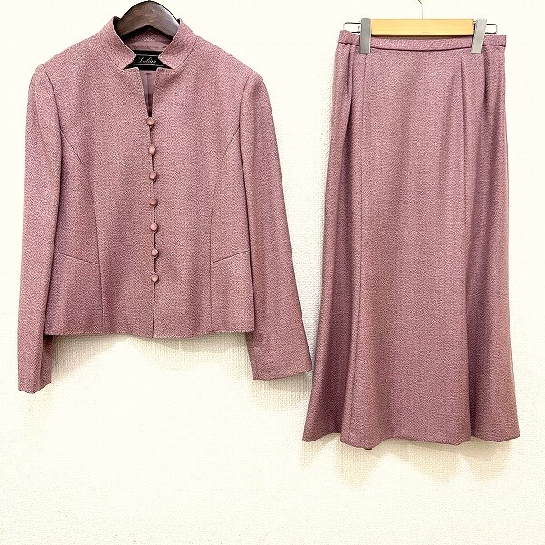 > #wnc レリアン Leilian スカートスーツ 9 ピンク系 セットアップ ツーピース スタンドカラー 美品 レディース [876609]