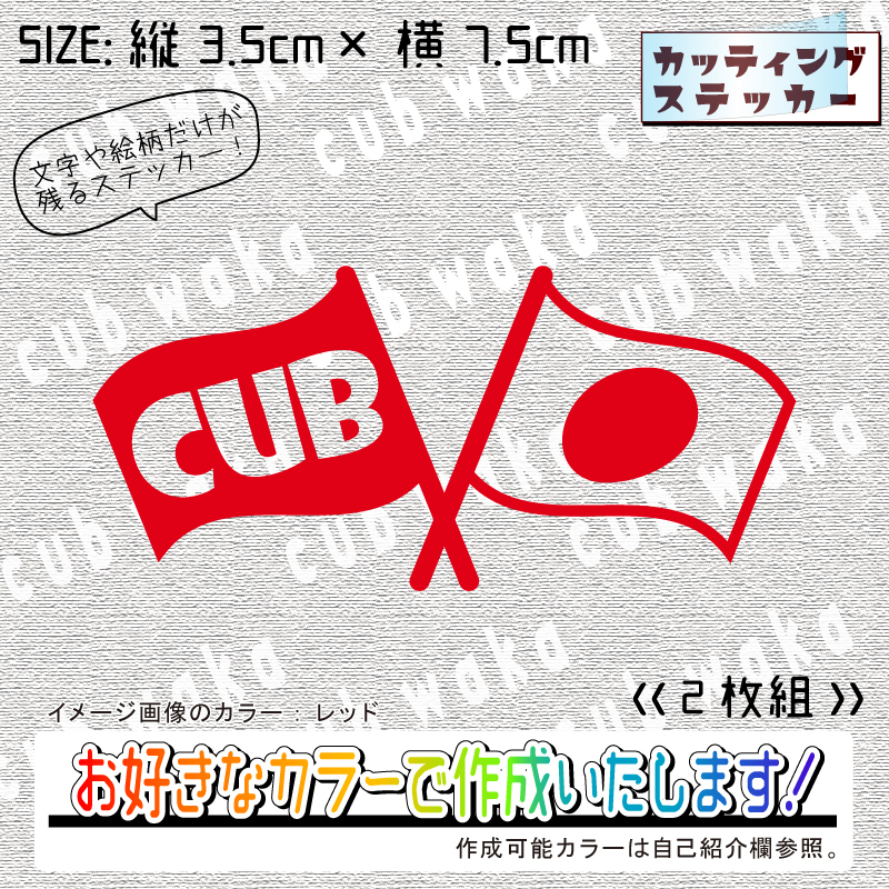 - 日章旗①CUBステッカー2枚組 文字絵柄だけ残るカッティングステッカー・CUB・カブ・リトル・ハンター・クロス・プレス
