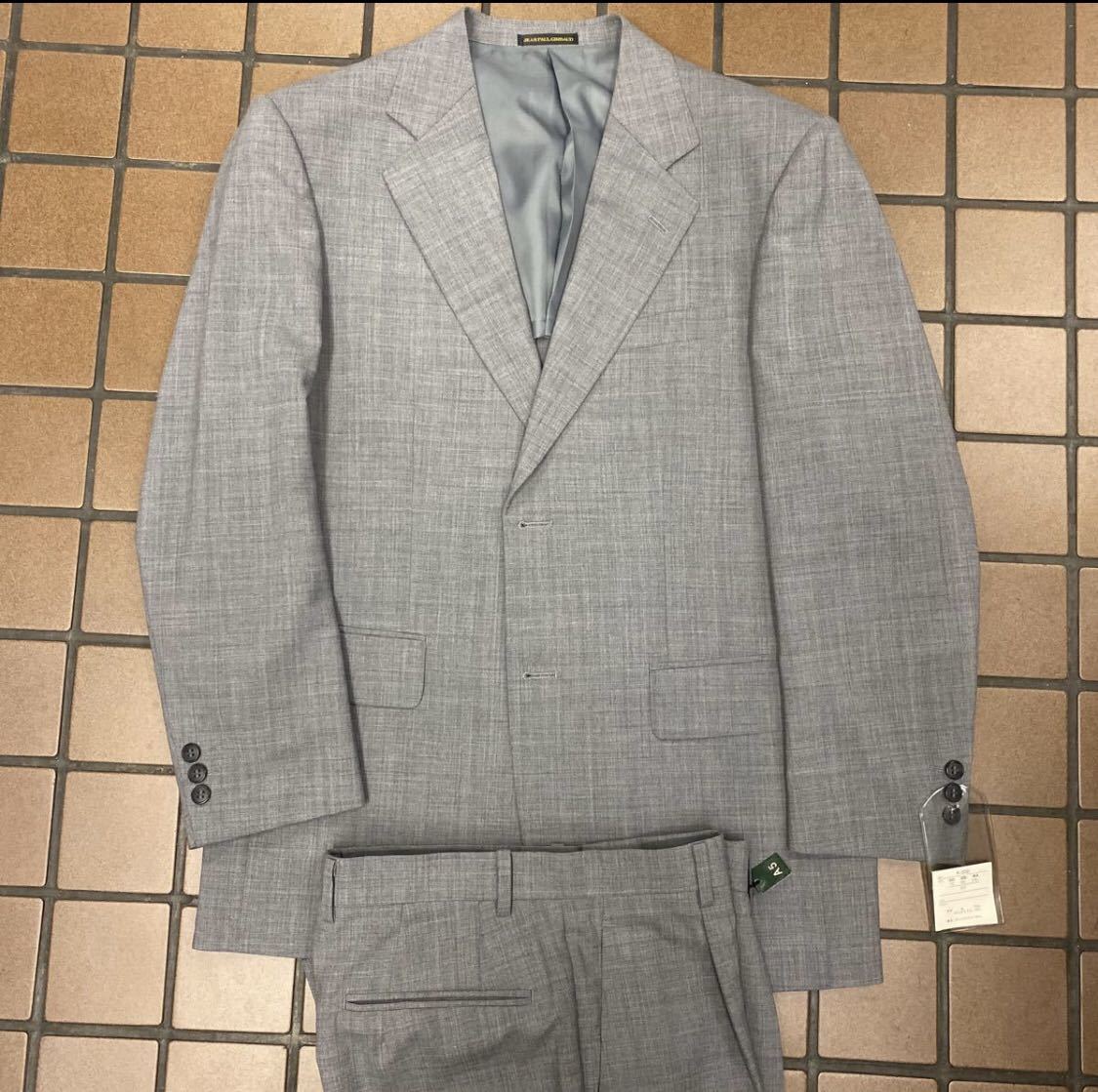 - 新品 未使用 タグ付き ライトグレー無地織柄スーツ 上下セットアップ サイズA5 2つボタン1タック 激安 サイドベンツ