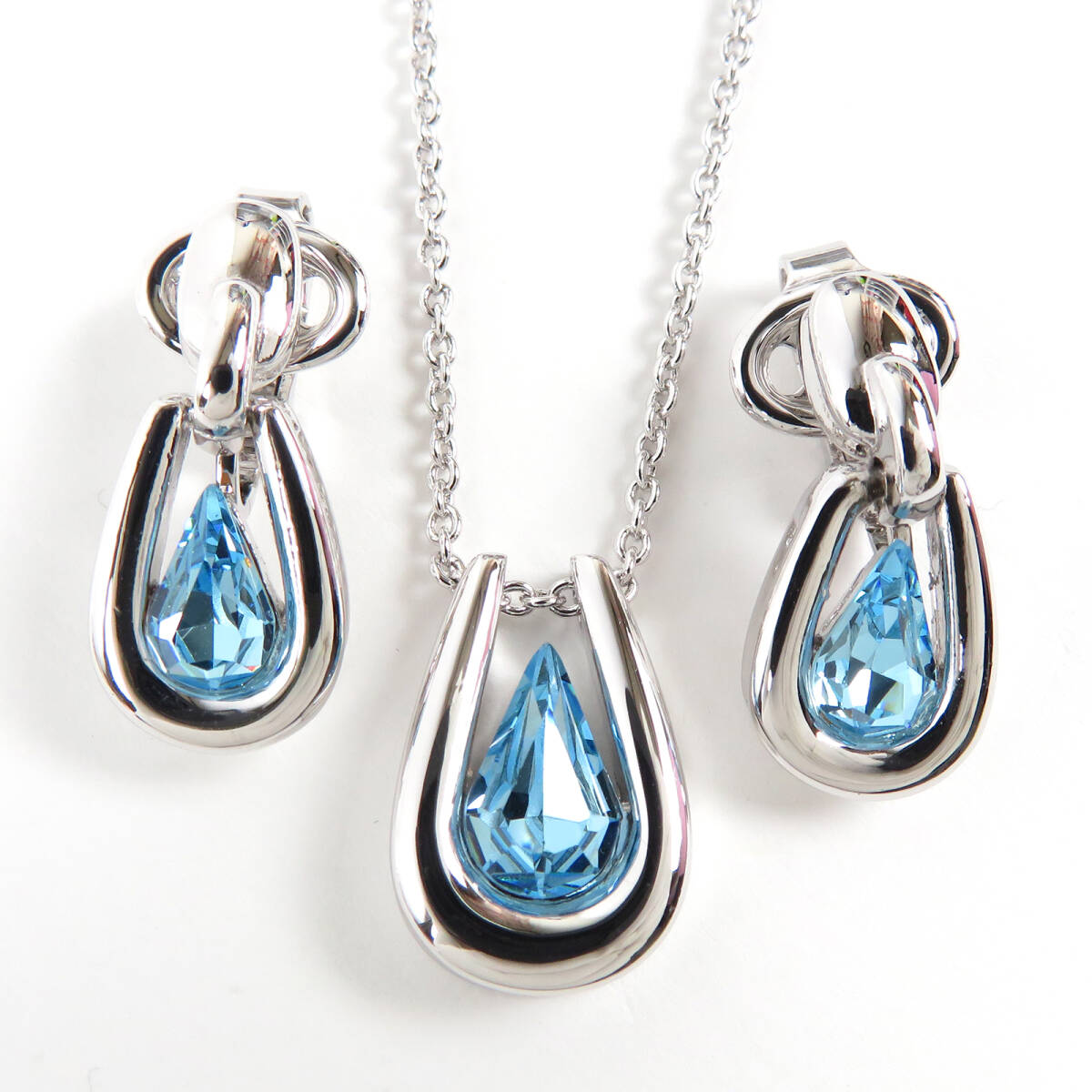 > NINA RICCI ニナリッチ しずく型 カラーストーン ネックレス イヤリング セット ブルー系 シルバーカラー レディース
