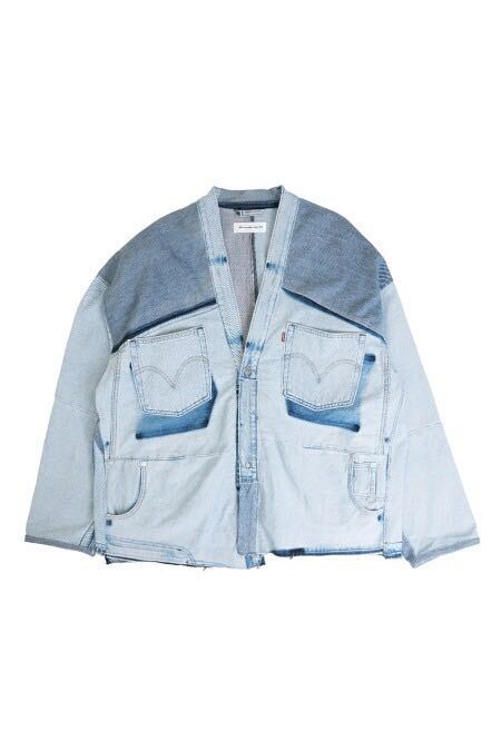 > Remake by Yi リメイクバイリー リーバイスデニム リメイク Levi’s denim ノーカラー ジャケット インディゴ ブルー フリー kimono visvim