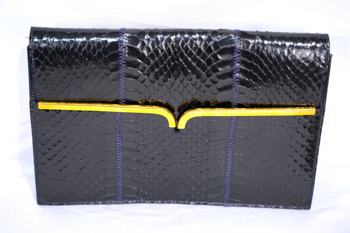 - 美品 即決本物 フランス製 リアルパイソン GOLDチェーンショルダーバッグ