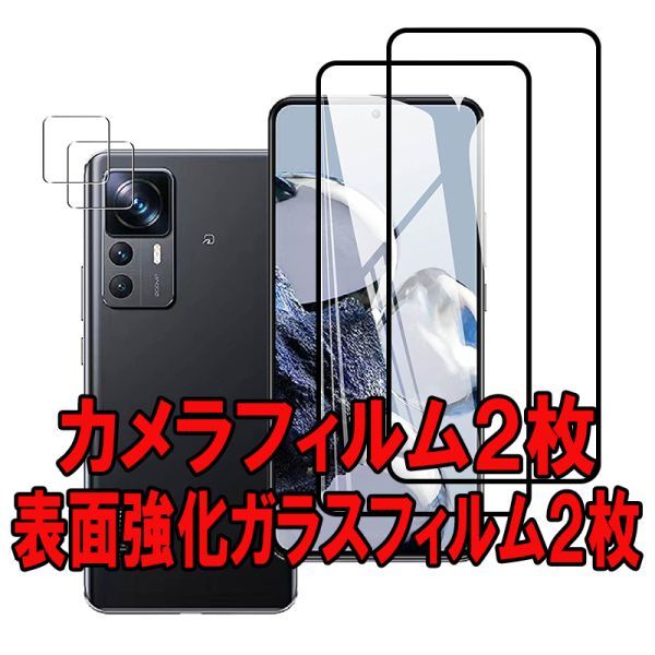 > 2セット=4枚 黒 Xiaomi 12T Pro ガラス フィルム シャオミ トゥエルブティー プロ カメラフィルム 保護 スクリーン カバー シール シート
