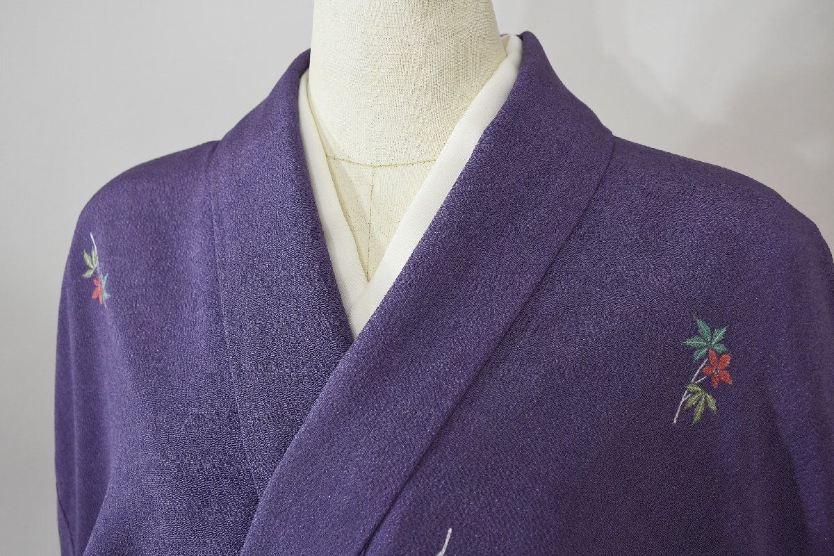 - 小紋 着物 単衣 縮緬 花 紫 ちりめん 身丈151.5cm 裄丈69cm ★ kb-5869 桜庭呉服店