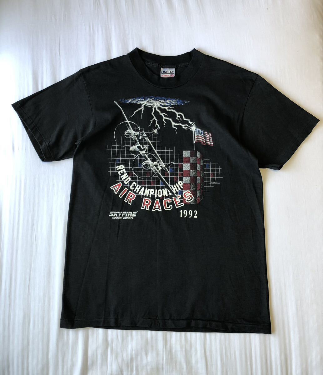 - 90s vintage RENO AIR RACES USA製 アメリカ エアレース チャンピオンシップ92年 Tシャツ 黒 L ONEITA ビンテージ オールド 90年代 米軍機