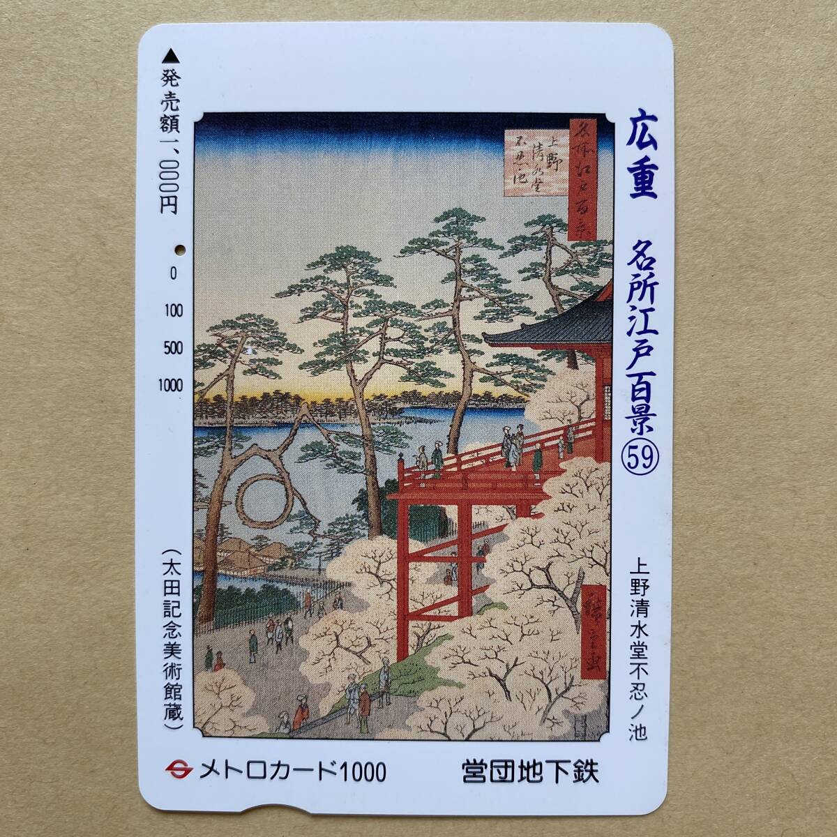- 【使用済】 浮世絵メトロカード 営団地下鉄 東京メトロ 歌川広重 名所江戸百景59 上野清水堂不忍ノ池