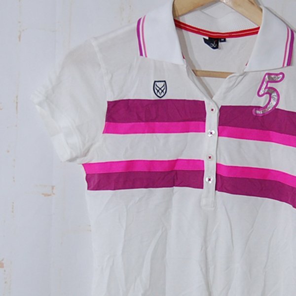 > シーダブリューエックスCW-X■半袖 ポロシャツ ゴルフウェア ラメプリント /ワコール レディース■M■ホワイト×ピンク ※IW4412288