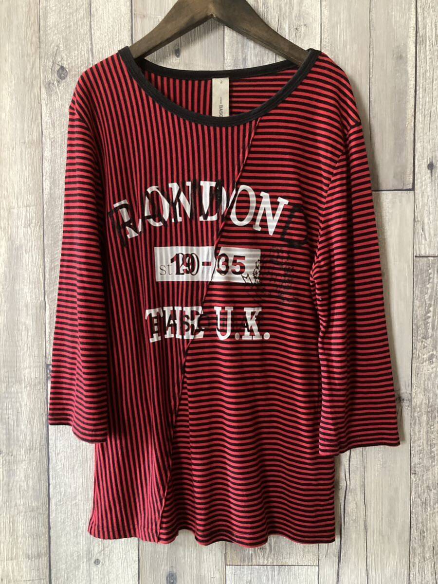 - ■送料込み即決■ BASQUIAT 七分袖 Tシャツ バスキア サイズ2 切り替えデザイン ボーダー レッド×ブラック LONDON イギリス RAYMOND