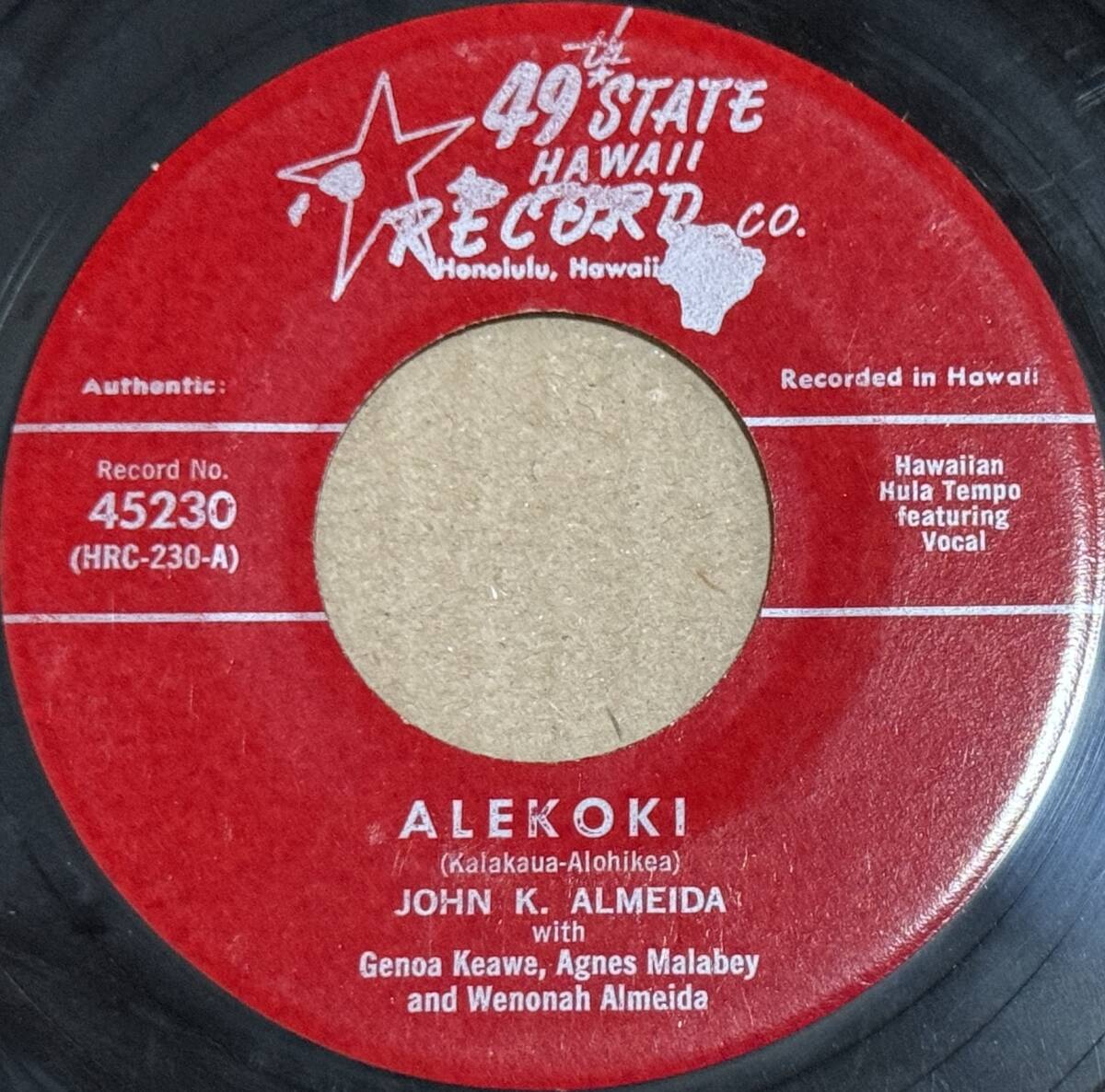 - Hapa Haole Hawaii 45RPM 【45230】Alekoki - Almeida with Genoa Keawe ,Agnes /Hula Girl - June Ululani Leite with Joe Keawe's