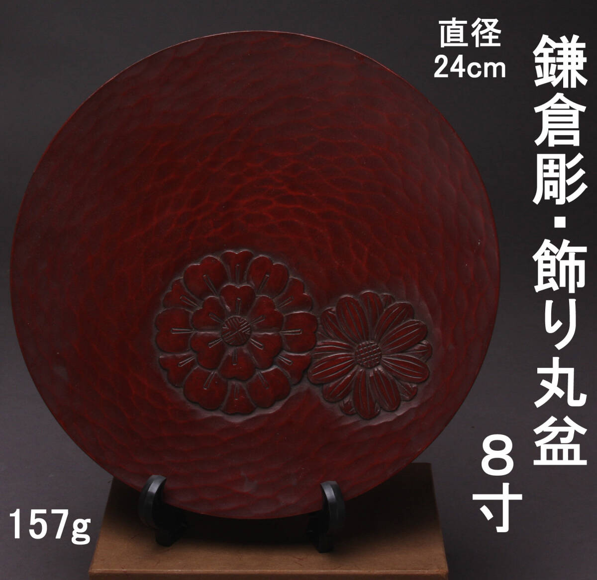 - 鎌倉彫 飾り丸盆 24㎝/8寸 使用感あり KA-7527