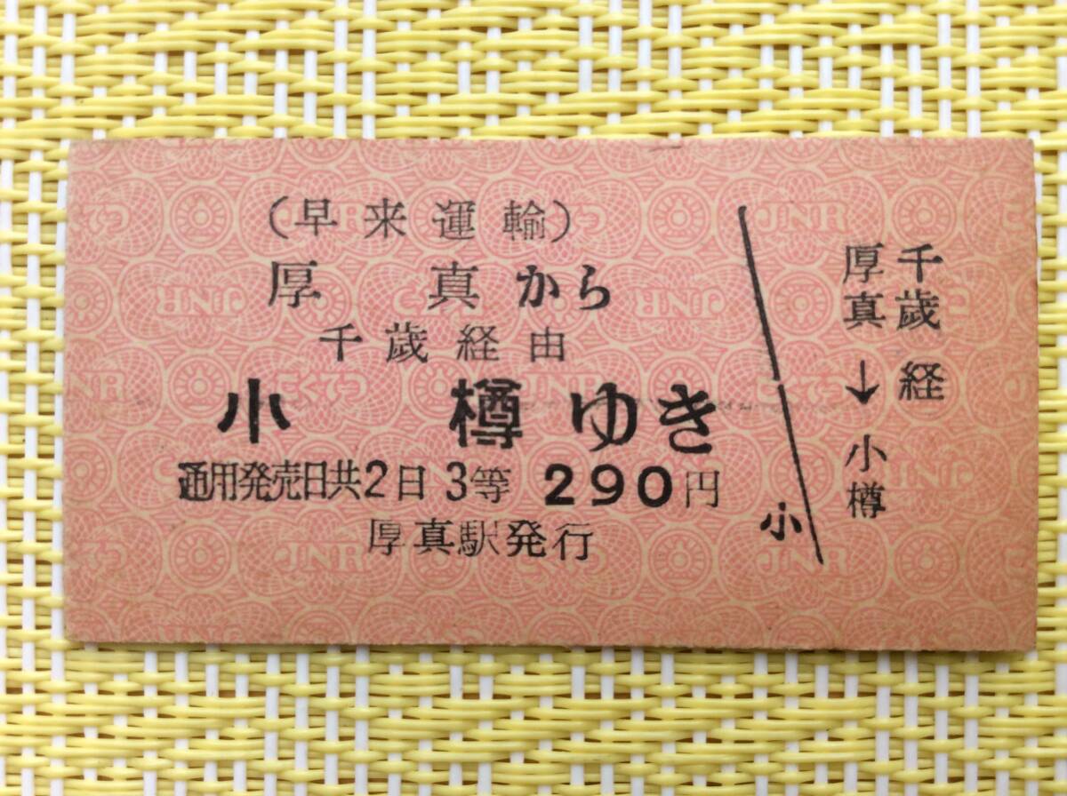 - 早来運輸 国鉄連絡乗車券 厚真→小樽 千歳経由 3等