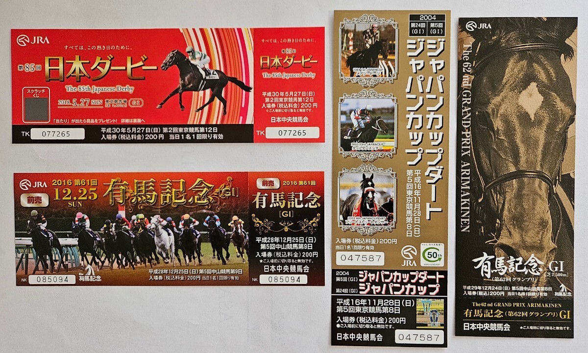 - JRA 入場券 2018年日本ダービー、2016年有馬記念、2004年ジャパンカップダート、2017年有馬記念