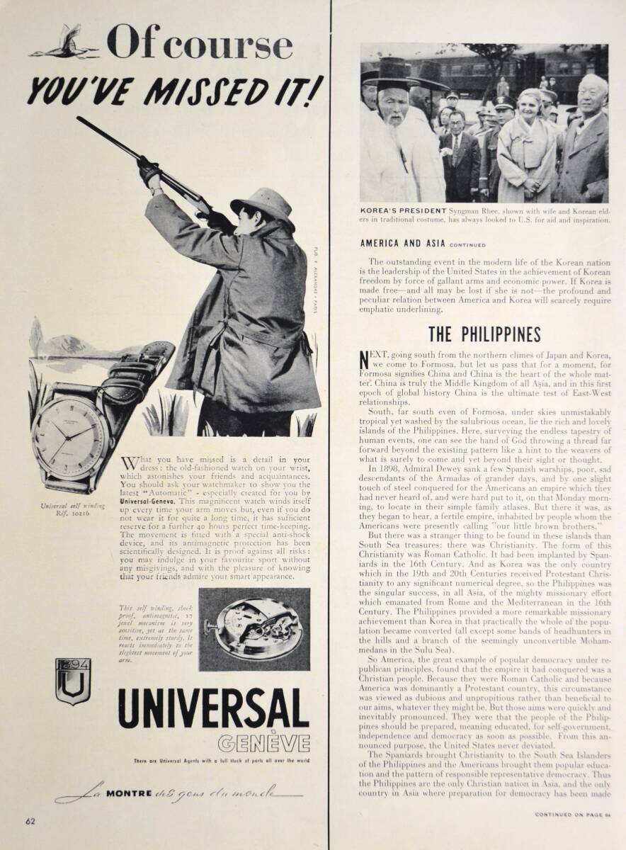 > 稀少・時計広告!1950年代ユニバーサル 時計広告/Universal Genrva Watch/Swiss/ハンター/狩猟/W