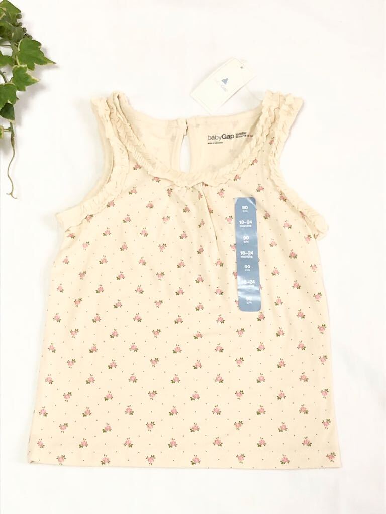 > ★未使用 GAP ギャップ お花柄 フリル ノースリーブ カットソー タンクトップ キャミソール アイボリー 90★