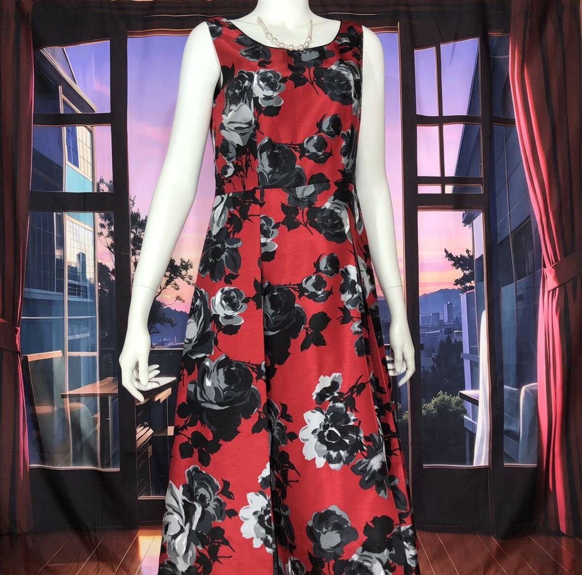 - LauraAshley レッドグレージュローズ柄ドレスワンピース M