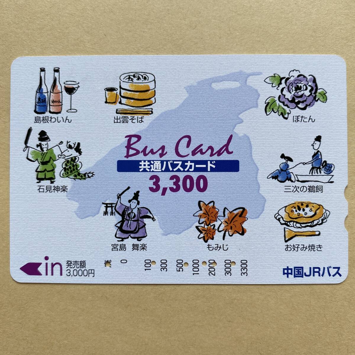 - 【使用済】 バスカード 中国JRバス 島根わいん 出雲そば ぼたん 石見神楽 三次の鵜飼 宮島舞楽 もみじ お好み焼き