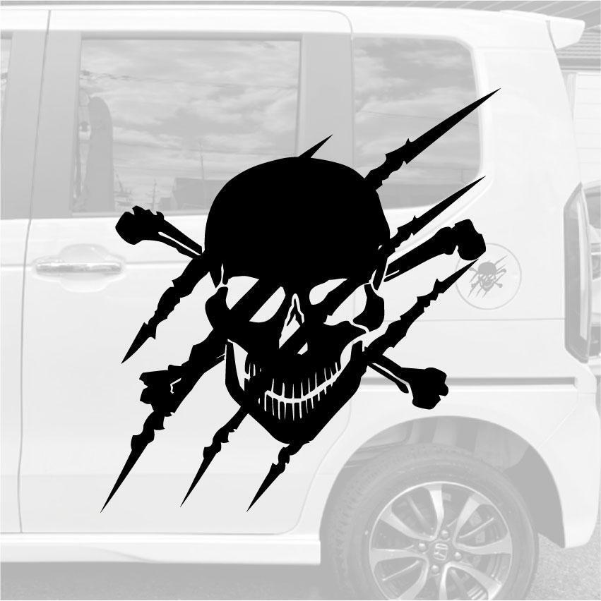 - ドクロ どくろ 骸骨 スカル 爪痕 傷 ステッカー シール カッティングステッカー 黒色