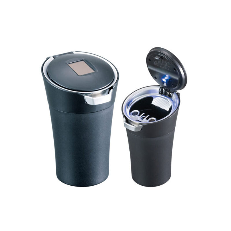 - ソーラーアッシュ シルバーメッキ・ブラック 灰皿 吸い殻入れ LED照明付 ワンプッシュレバー セイワ WA129