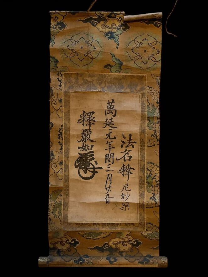 - 【模写】掛軸Jun604[大谷光勝(巖如)法名之書]紙本版摺 木版画/送料430円 仏画 仏教美術 浄土真宗 東本願寺法主 花押印 万延元年