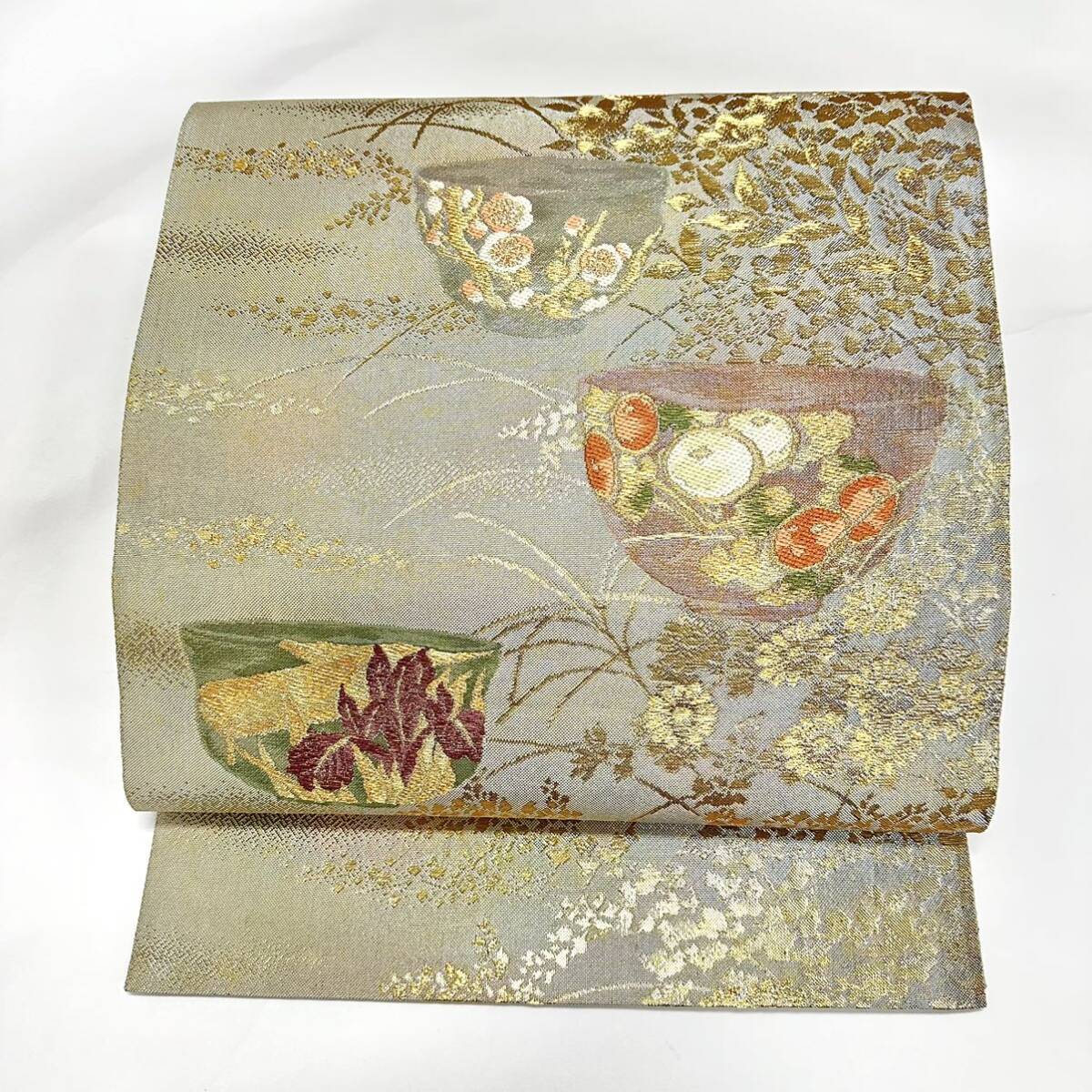 - 【七福】c109 逸品 高級品 正絹 袋帯 六通 太鼓柄 フォーマル 金糸 銀糸 豪華 古典柄 正倉院紋様 長さ 約432cm 留袖 訪問着 色無地