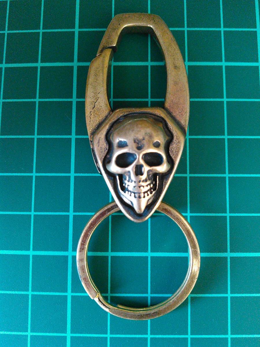 - 送料無料 真鍮製 ドクロのカラビナ 検)ワレットチェーン キーホルダー 小物 スカル レザークラフト 手芸 ハンドメイド キーチェーン パンク