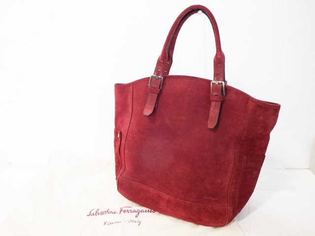 - フェラガモ SalvatoreFerragamo トートバッグ スエード ボルドー■A4対応可 大容量