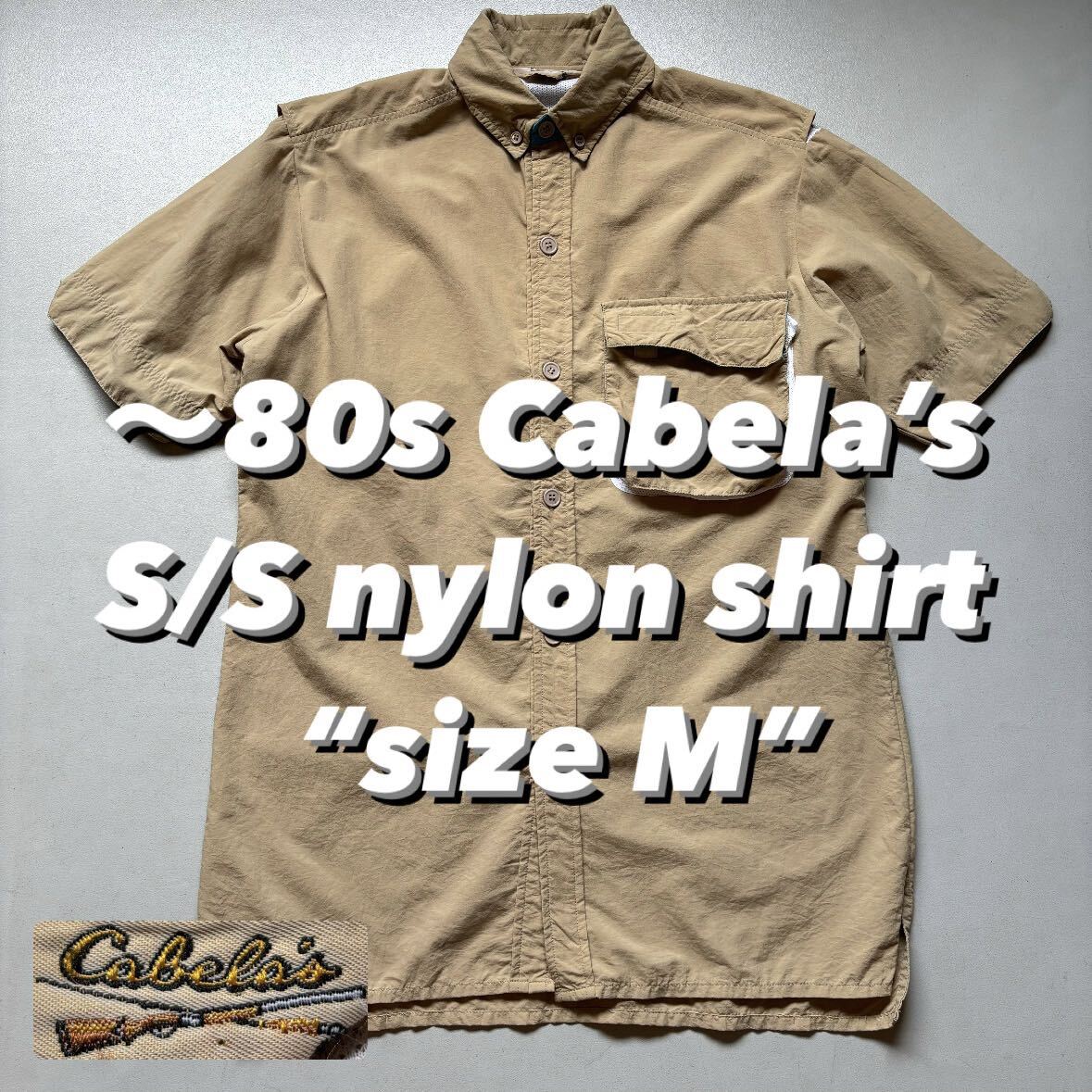 > 〜80s Cabela’s S/S nylon shirt “size M” 70年代 80年代 カベラス 半袖シャツ ナイロンシャツ ボタンダウン ベージュ メッシュ