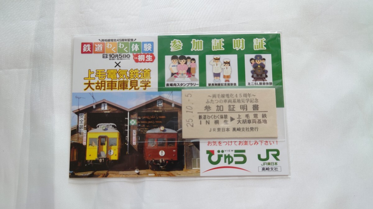 - ▲JR東日本/びゅう▲鉄道わくわく体験上毛電気鉄道大胡車庫見学 硬券参加証明書▲平成25年