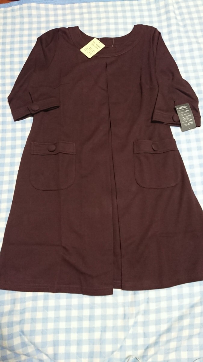 - @427☆未使用・保管品☆授乳服☆鹿の子ポンチ センタータックチュニックワンピ バーガンディМ