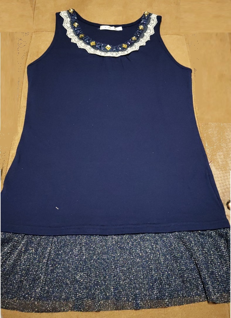 - 419◇ビーズ&ビジューロングタンク 紺 ネイビー axes femme アクシーズ ファム TS1X253