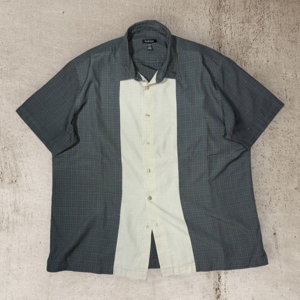> ★50'Sスタイル★ VAN HEUSEN半袖切替しシャツ XL グレー/クリーム系 スリット ロックンロール ロカビリー古着 洗濯 プレス済み 1385