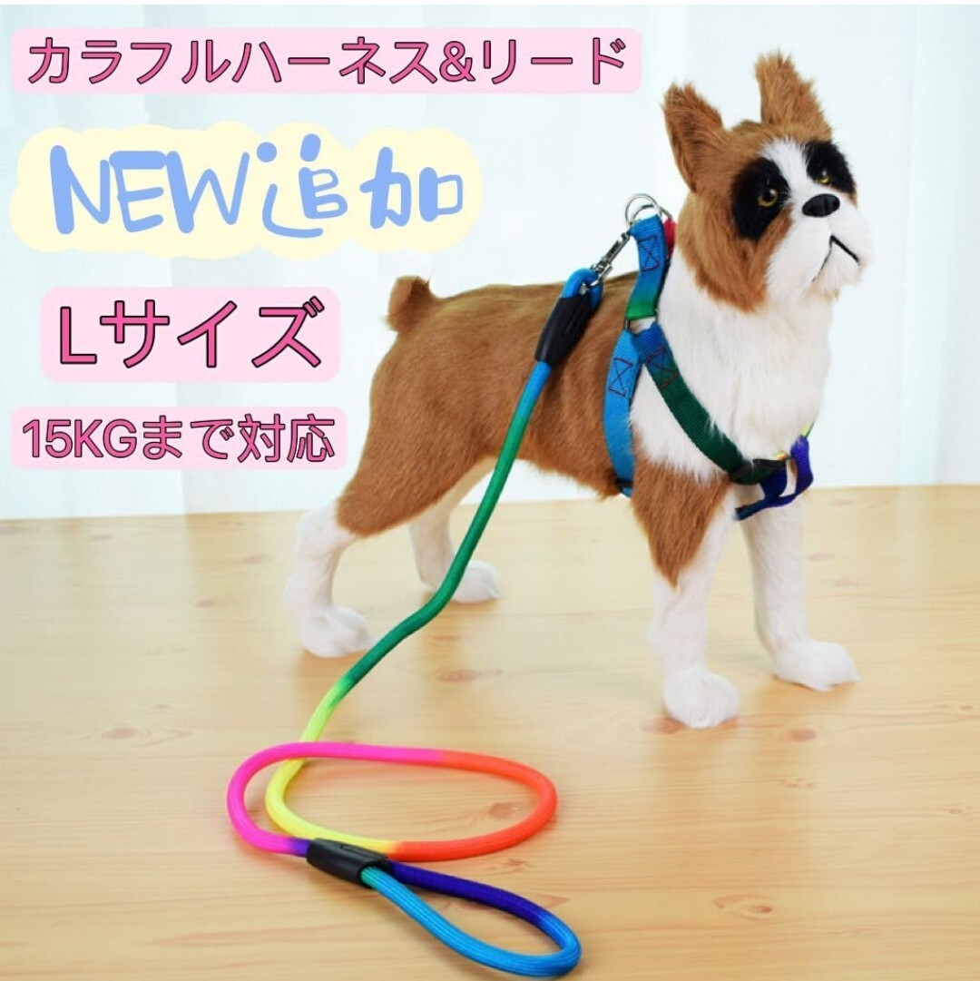 - L カラフル ナイロン ハーネスリードセット 首輪 胴輪 犬用品 ペットグッズ Lサイズ