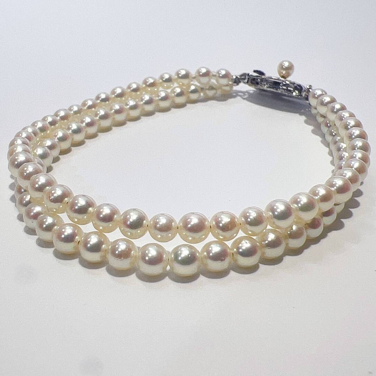- SV 天然 AKOYA アコヤ ベビーパール 2連 ブレスレット 17.5cm レディース アクセサリー 美品
