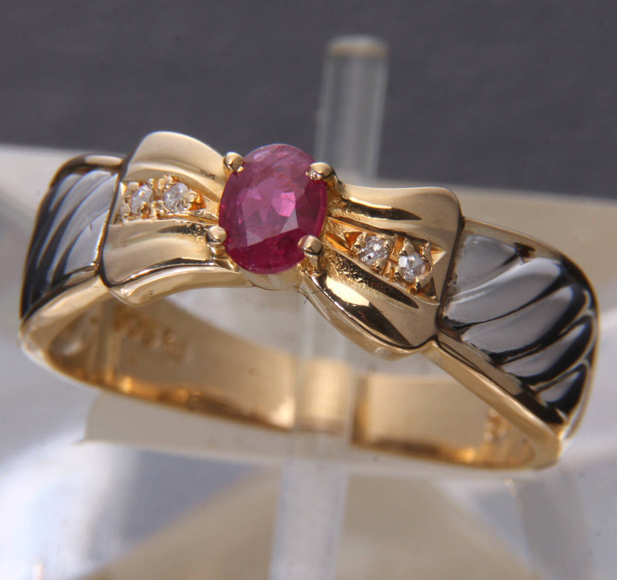 - ke9884◆K18/Pt900リング ルビー&ダイヤモンド リボンモチーフ 12.5号