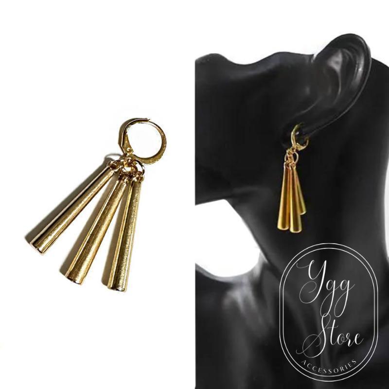 - 【アウトレット】3連 ドロップ ピアス 金 ゴールド 3バー付き ワンピース コスプレ 衣装 男女兼用 大きめ 訳あり ゾロ zoro