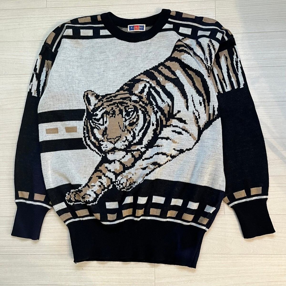 > K.Collection ケイコレクション タイガー ビッグロゴ ニット アクリルセーター トラ柄 アニマル 毛混 ブラック