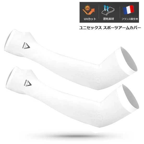 - 送料無料 新品 サイクリング スポーツ UVカット アームカバー ユニセックス フリーサイズ ホワイト ゴルフ ランニング アウトドア