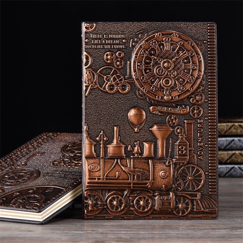 - スチームパンク ノート 手帳 ブック 機関車 SL 旅行記 日記 エンボス 3D 立体 ギフト プレゼント ヴィンテージ