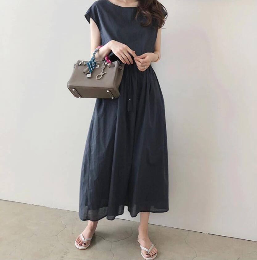 - 新品 人気推薦 /ワンピース オフィス 通勤 綿麻 夏 半袖 きれいめ 体型カバー カジュアル ロングワンピース きれいめ /ネイビー /2XL