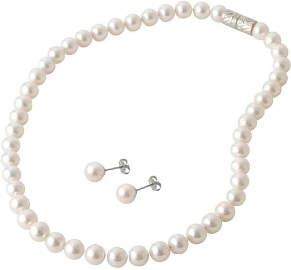 > まつよ 花珠貝パール 真珠 10mm 結婚式 冠婚葬祭 卒業式 入学式 アクセサリー 42cm ピアス セット【ホワイトカラー/マグネット式】