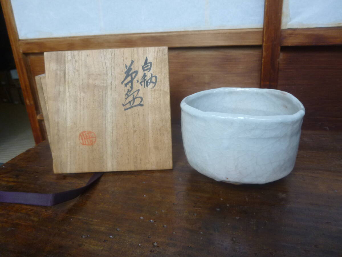 - 白釉茶碗・田村吾川(真野陶苑)・共箱